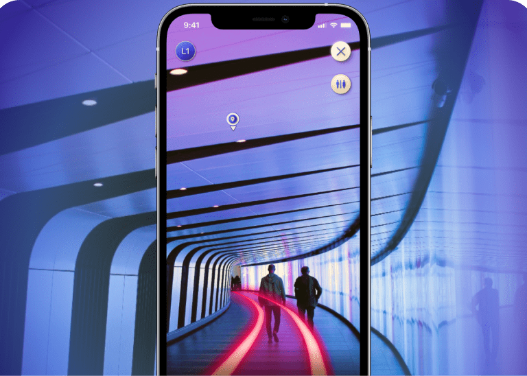 Dynamic arrows or AR markers guide them to their destination (seat, restrooms, food stands, exits, etc.).